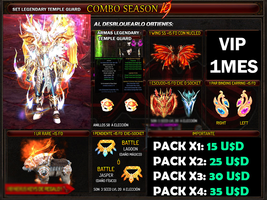 PRECIO DE LOS PACKS COMPLETOS (SET, ARMAS Y ALAS A ELECCION)